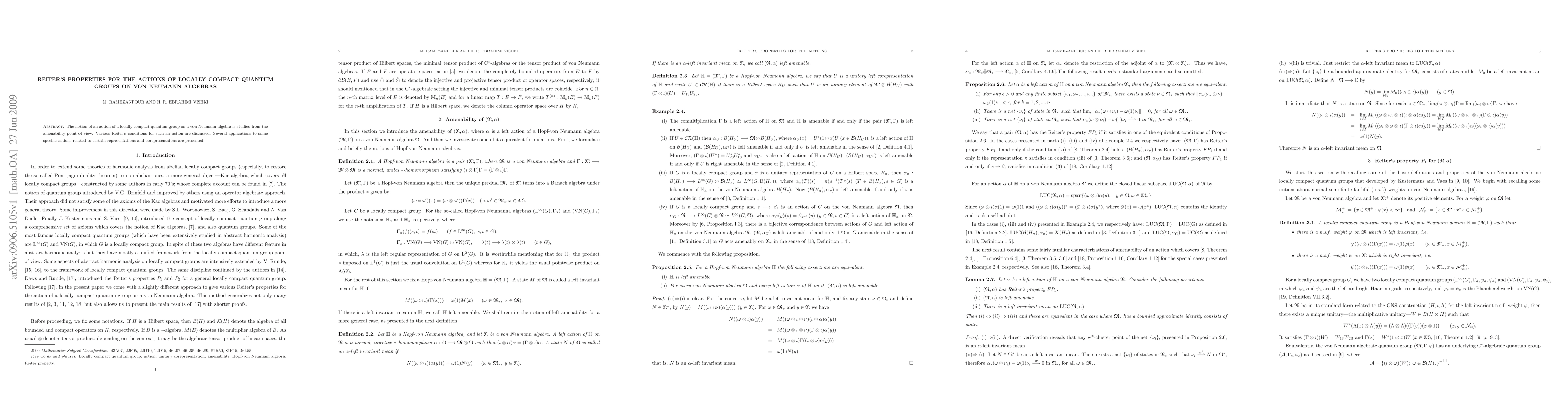 The paper studies Reiter's properties for actions of locally compact quantum groups on von Neumann algebras, focusing on amenability from the perspective of these actions and examining various Reiter's conditions.
