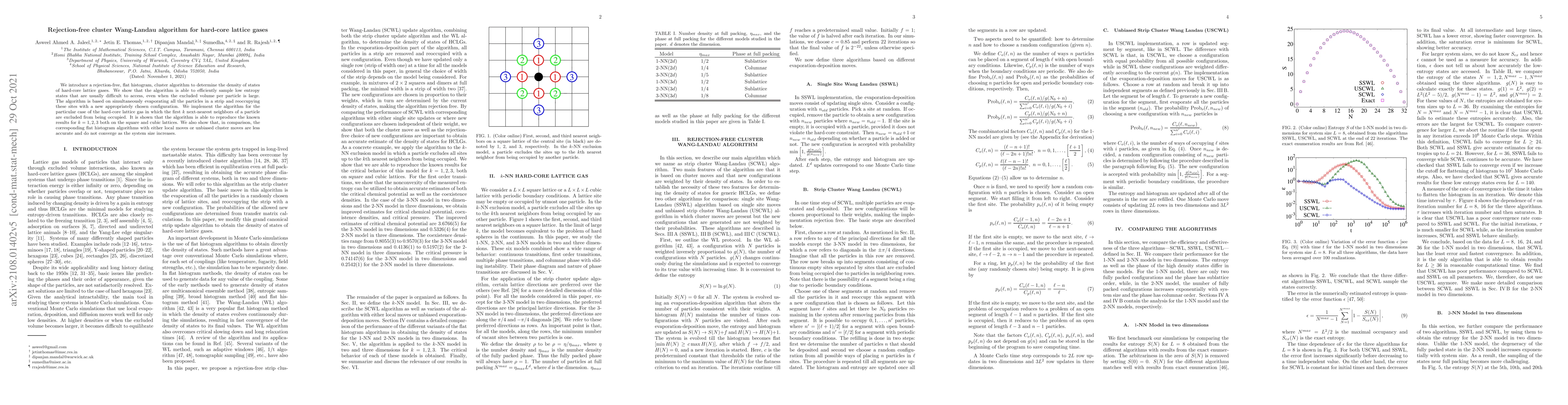 This paper presents a rejection-free cluster Wang-Landau algorithm for efficiently sampling low entropy states in hard-core lattice gases, demonstrating its effectiveness over traditional methods by evaporating and reoccupying particles in clusters. The algorithm accurately reproduces known results for k=1, 2, 3 on square and cubic lattices, outperforming local and unbiased cluster methods.