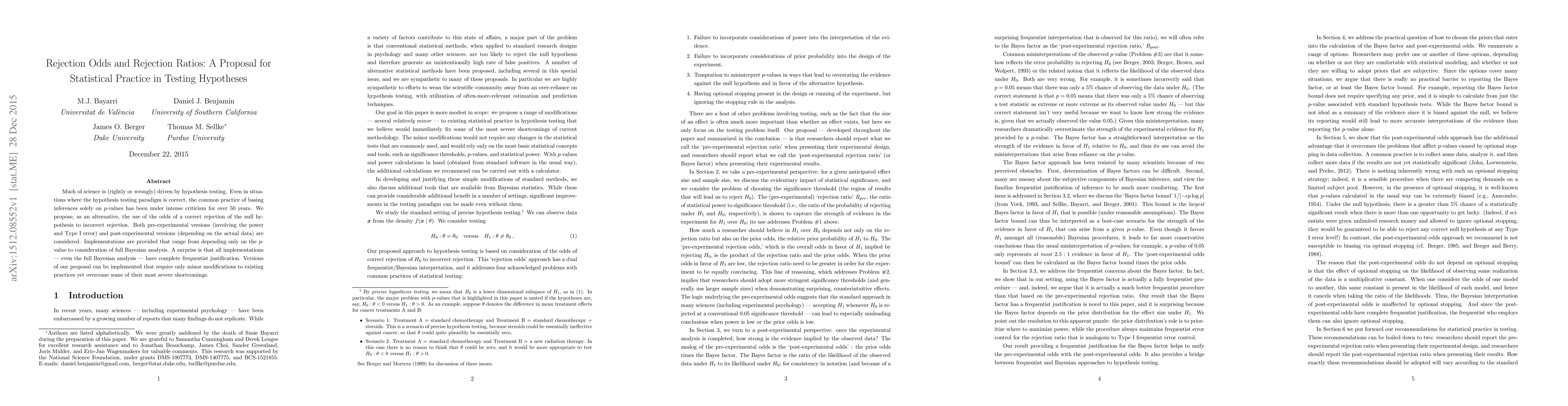 Much of science is (rightly or wrongly) driven by hypothesis testing. Even in situations where the hypothesis testing paradigm is correct, the common practice of basing inferences solely on p-values has been under intense criticism for over 50 years. We propose, as an alternative, the use of the odds of a correct rejection of the null hypothesis to incorrect rejection. Both pre-experimental versions (involving the power and Type I error) and post-experimental versions (depending on the actual data) are considered. Implementations are provided that range from depending only on the p-value to consideration of full Bayesian analysis. A surprise is that all implementations -- even the full Bayesian analysis -- have complete frequentist justification. Versions of our proposal can be implemented that require only minor modifications to existing practices yet overcome some of their most severe shortcomings.