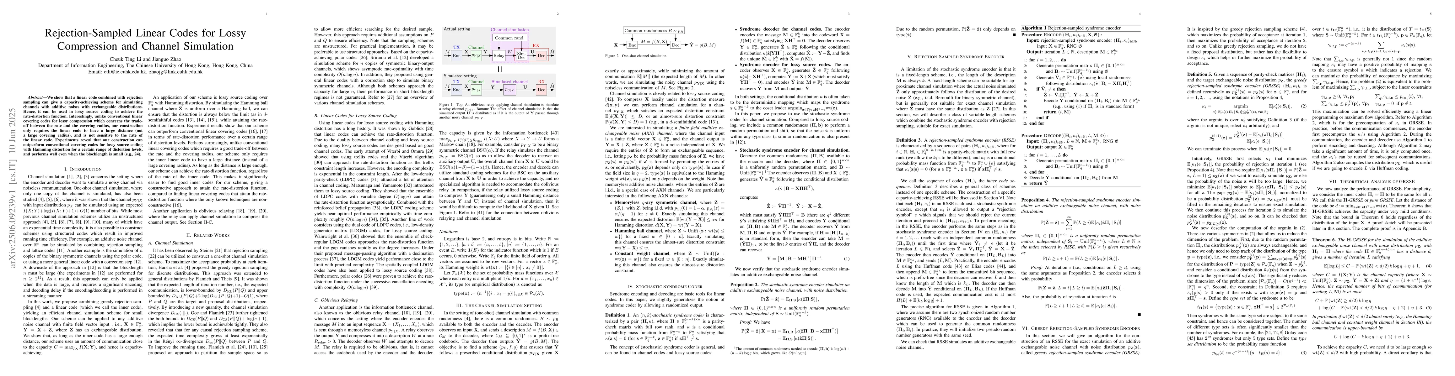 Researchers develop a new method combining linear codes with rejection sampling to achieve capacity in lossy compression and channel simulation, outperforming conventional methods for certain distortion levels and small block lengths.