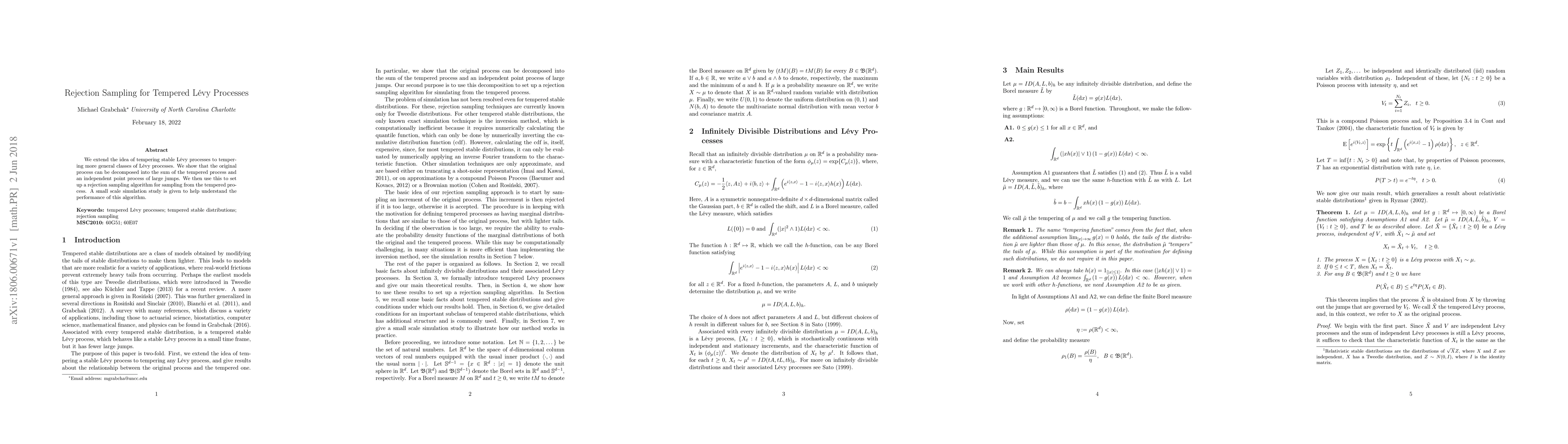 Researchers extended tempering stable Levy processes to temper more general classes of Levy processes, enabling rejection sampling for these processes. This allows for efficient simulation and estimation of complex probability distributions.