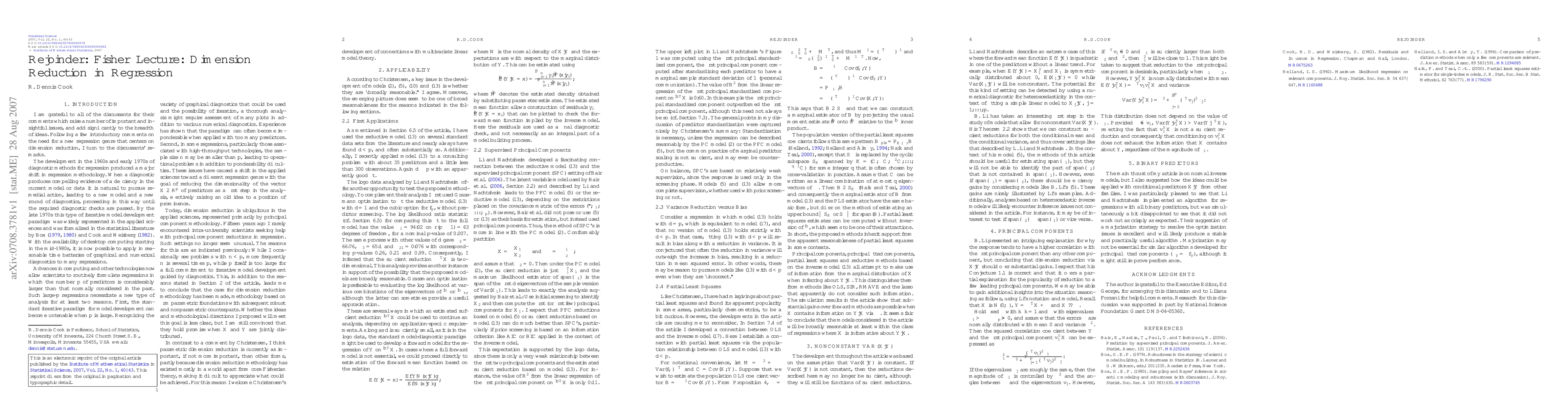 This rejoinder to the Fisher Lecture discusses advancements in dimension reduction techniques for regression analysis, emphasizing their importance in managing high-dimensional data and improving model interpretability. The author reflects on the ongoing challenges and future directions in this field.