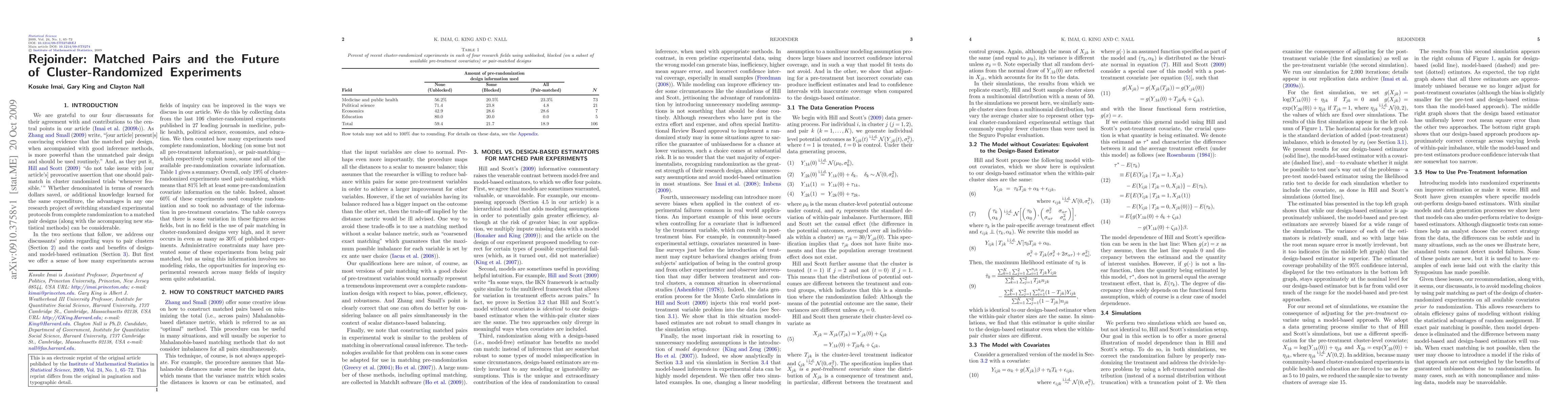 This paper responds to a previous study on cluster-randomized experiments, arguing against the importance of matched pairs in these studies. It challenges the idea that pair matching is essential for causal inference in such experiments.