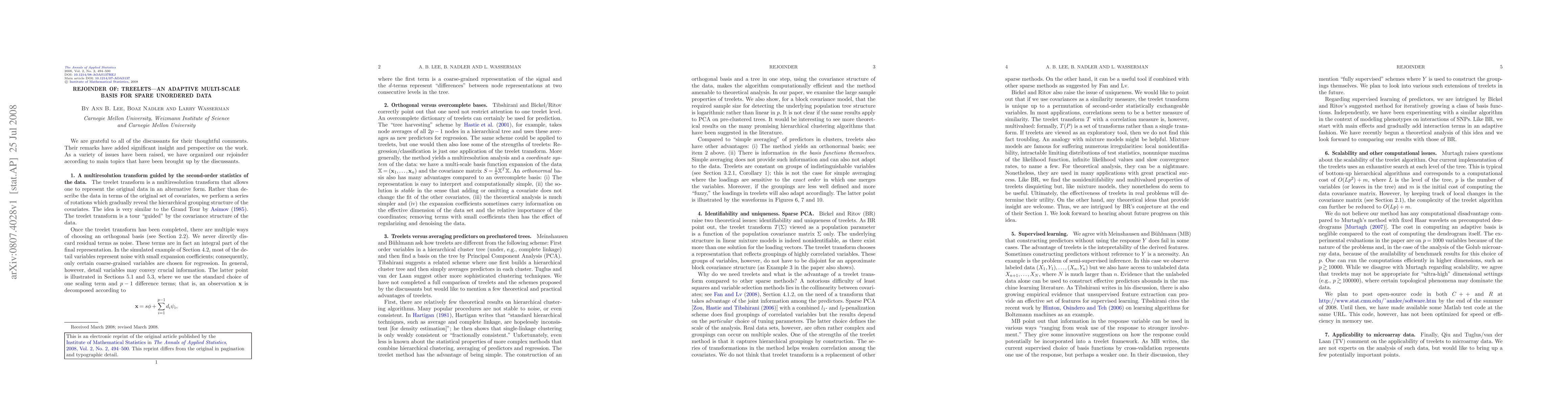 Rejoinder of "Treelets--An adaptive multi-scale basis for spare unordered data" [arXiv:0707.0481]