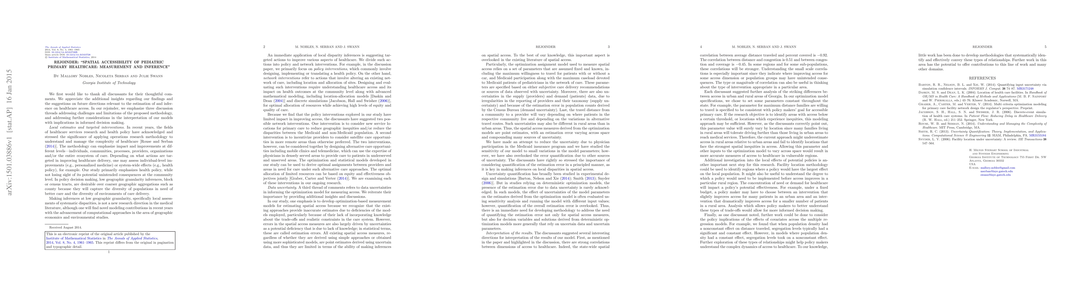 Rejoinder of "Spatial accessibility of pediatric primary healthcare: Measurement and inference" by Mallory Nobles, Nicoleta Serban and Julie Swann [arXiv:1501.03626].