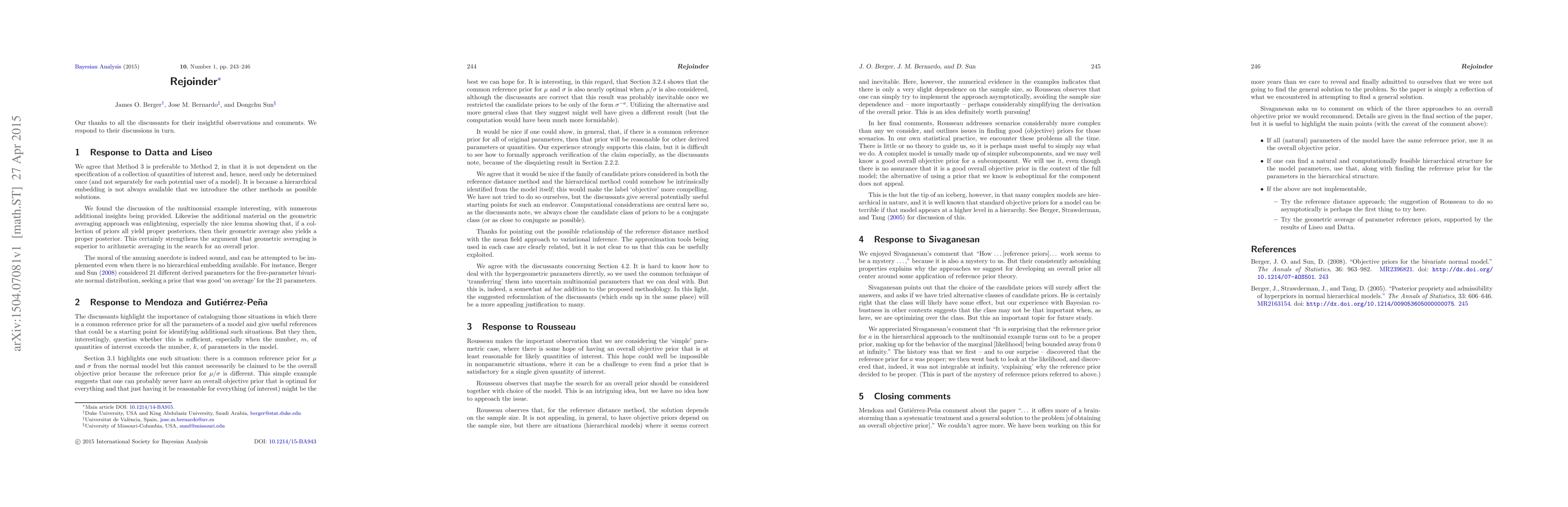 Rejoinder to Overall Objective Priors by James O. Berger, Jose M. Bernardo, Dongchu Sun [arXiv:1504.02689]