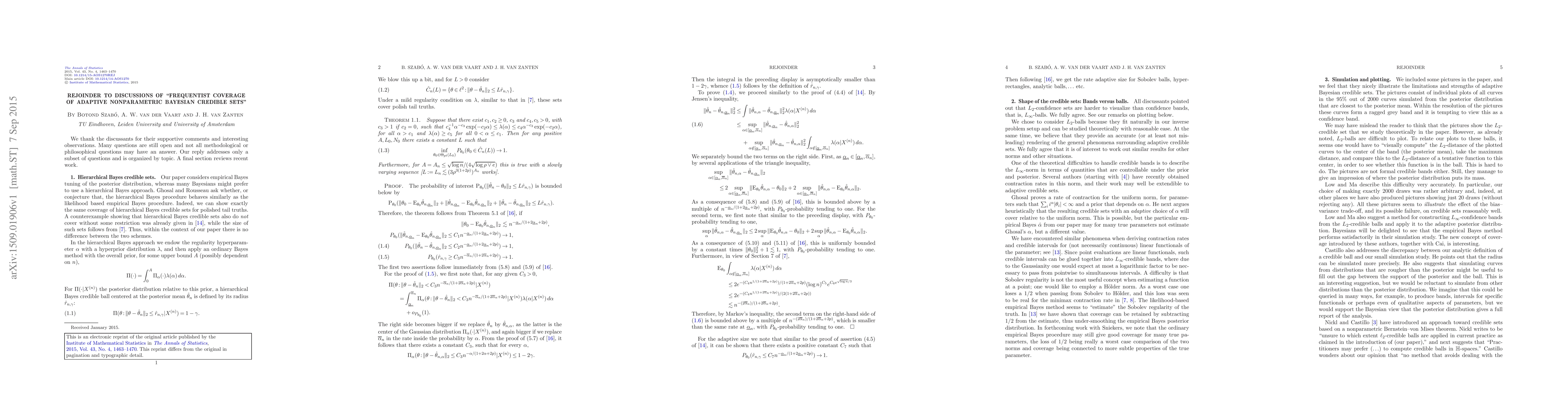 Rejoinder of "Frequentist coverage of adaptive nonparametric Bayesian credible sets" by Szab\'o, van der Vaart and van Zanten [arXiv:1310.4489v5].