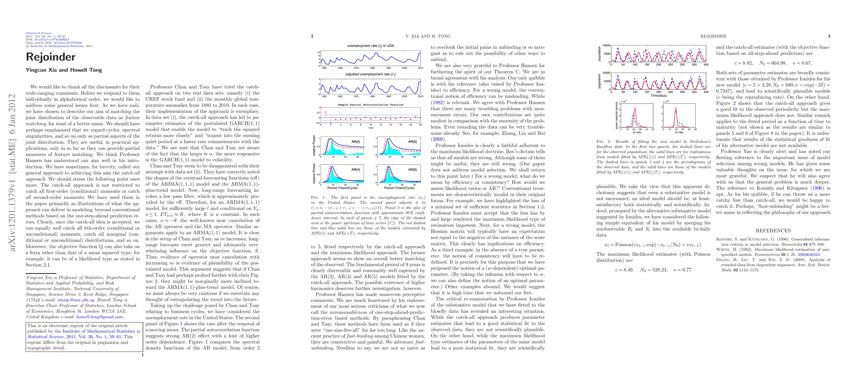 This rejoinder addresses and critiques the methodological approaches proposed by Xia and Tong in their feature matching technique for time series modeling, highlighting potential limitations and suggesting alternative perspectives to improve the robustness of time series analysis. The author proposes refined strategies for enhancing feature matching in time series data.