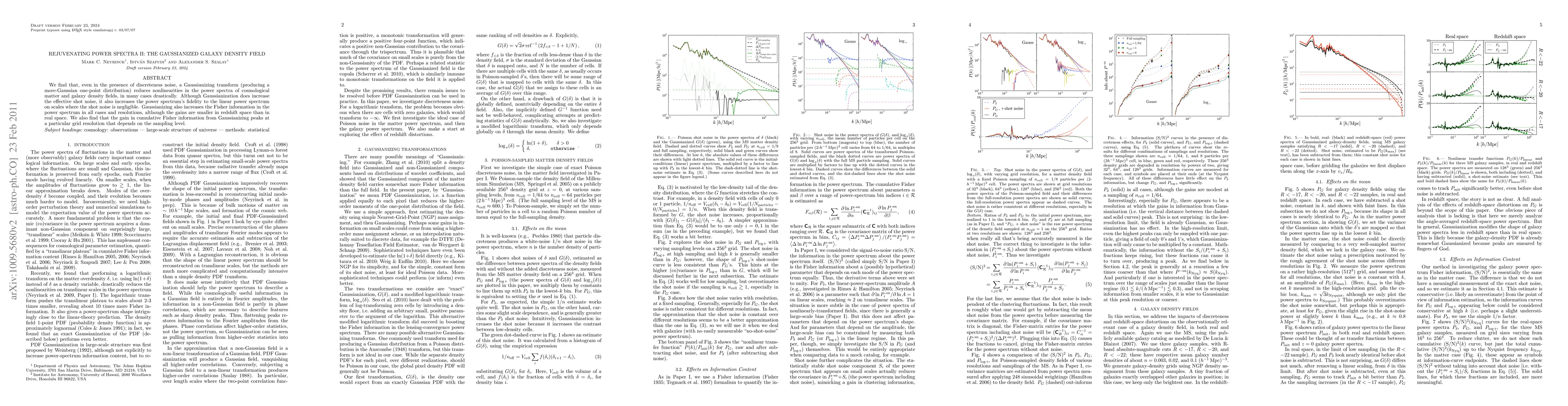 This paper demonstrates that applying a Gaussianizing transform to the galaxy density field can significantly reduce nonlinearities in the power spectrum, improving its fidelity to the linear power spectrum on small scales. The method also enhances the Fisher information, though the benefits are more pronounced in real space than in redshift space.