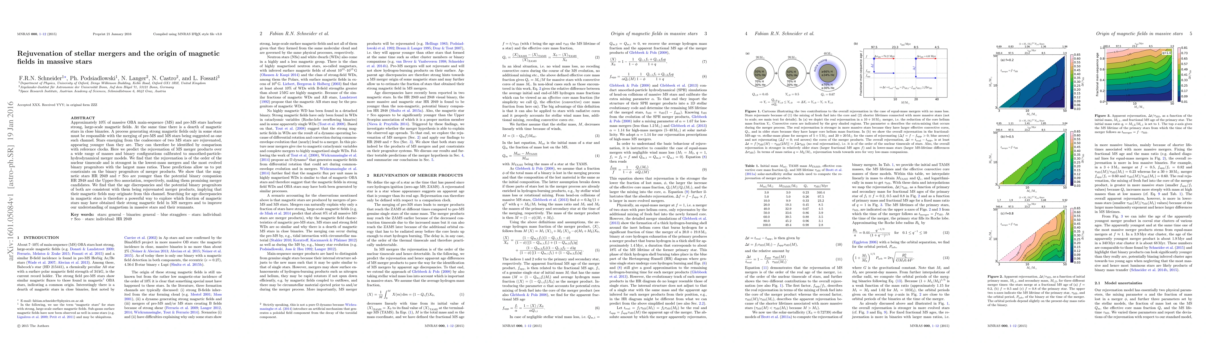 This paper investigates the rejuvenation of stellar mergers and proposes that merging pre-main-sequence and main-sequence stars can generate strong magnetic fields in massive stars. It finds that rejuvenated merger products show significant age discrepancies, suggesting that stars like HR 2949 and τ Sco may have originated from such mergers, thus providing a potential mechanism for their magnetic fields.