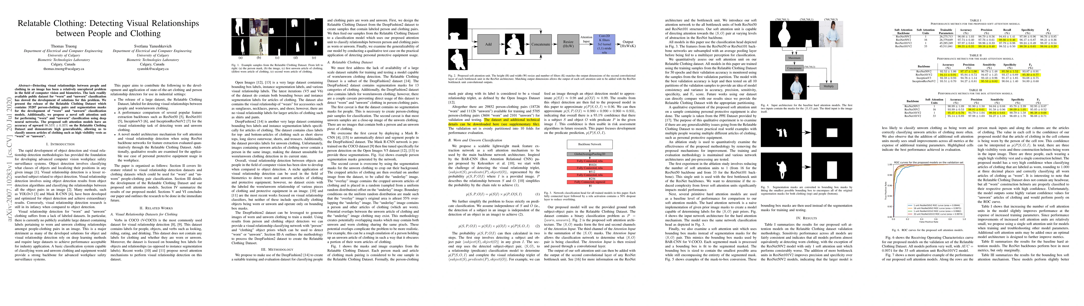 Detecting visual relationships between people and clothing in an image has been a relatively unexplored problem in the field of computer vision and biometrics. The lack readily available public dataset for ``worn'' and ``unworn'' classification has slowed the development of solutions for this problem. We present the release of the Relatable Clothing Dataset which contains 35287 person-clothing pairs and segmentation masks for the development of ``worn'' and ``unworn'' classification models. Additionally, we propose a novel soft attention unit for performing ``worn'' and ``unworn'' classification using deep neural networks. The proposed soft attention models have an accuracy of upward $98.55\% \pm 0.35\%$ on the Relatable Clothing Dataset and demonstrate high generalizable, allowing us to classify unseen articles of clothing such as high visibility vests as ``worn'' or ``unworn''.