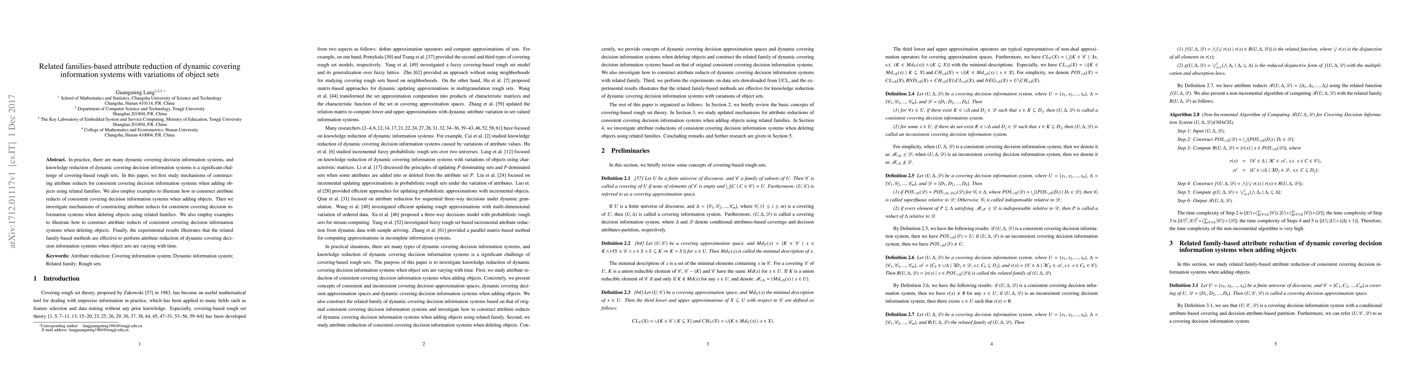 This paper explores attribute reduction mechanisms in dynamic covering decision information systems using related families, illustrating methods for constructing attribute reducts when objects are added or deleted. Experimental results show the effectiveness of these methods in handling varying object sets over time.