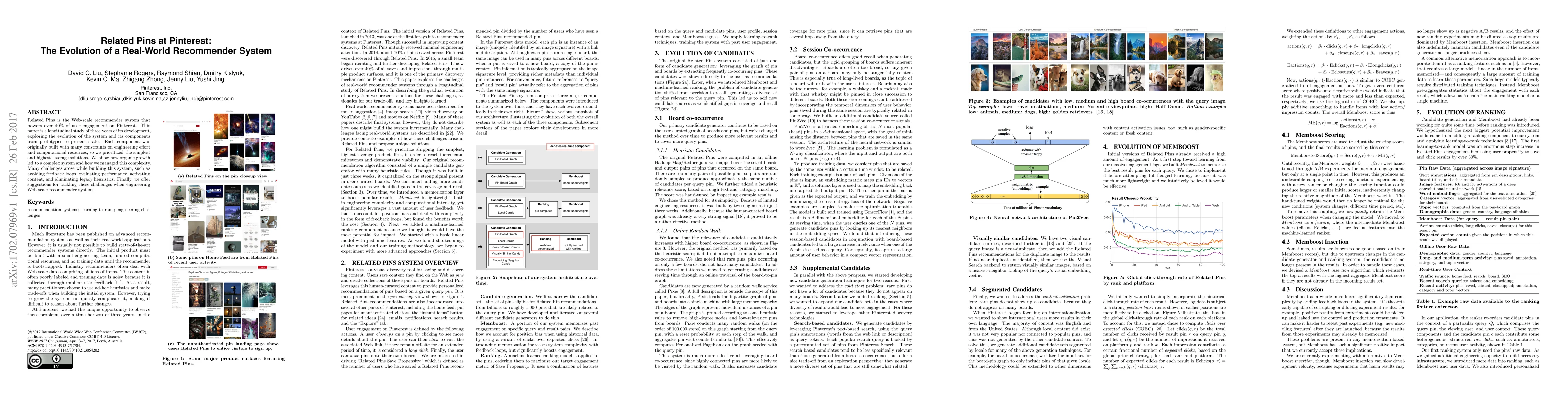Related Pins is the Web-scale recommender system that powers over 40% of user engagement on Pinterest. This paper is a longitudinal study of three years of its development, exploring the evolution of the system and its components from prototypes to present state. Each component was originally built with many constraints on engineering effort and computational resources, so we prioritized the simplest and highest-leverage solutions. We show how organic growth led to a complex system and how we managed this complexity. Many challenges arose while building this system, such as avoiding feedback loops, evaluating performance, activating content, and eliminating legacy heuristics. Finally, we offer suggestions for tackling these challenges when engineering Web-scale recommender systems.
