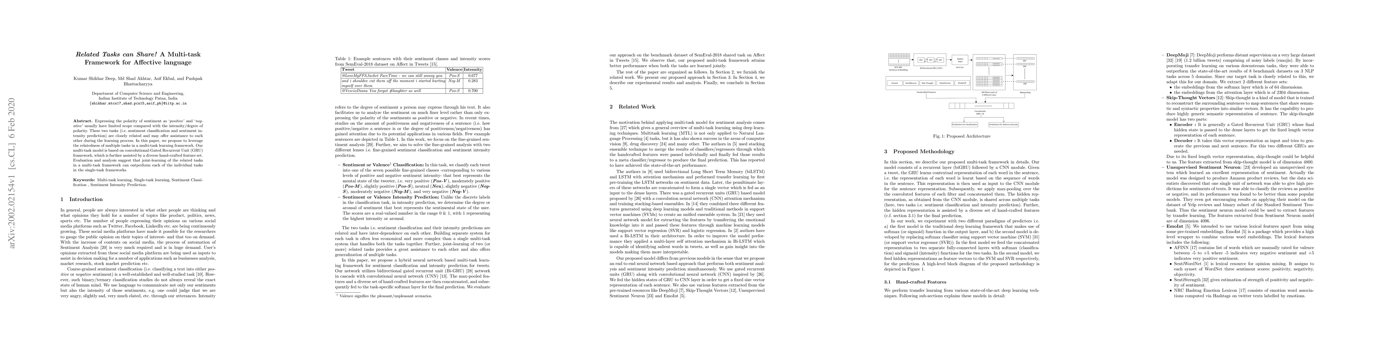A multi-task framework using convolutional-Gated Recurrent Unit (GRU) improves sentiment classification and intensity prediction by leveraging related tasks, outperforming single-task frameworks.