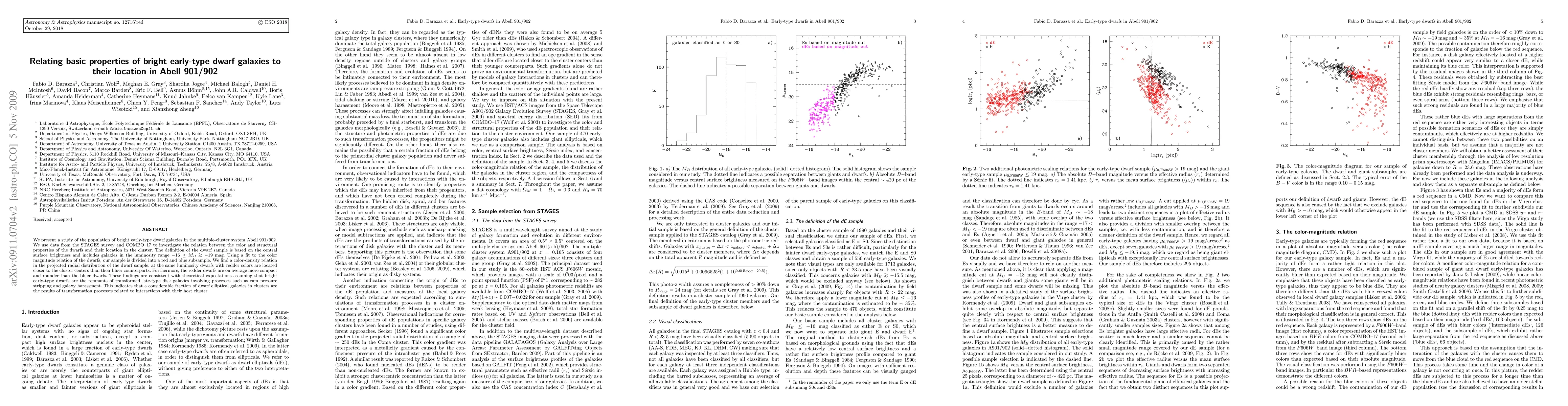 This study investigates the properties of bright early-type dwarf galaxies in the Abell 901/902 cluster system, finding that redder dwarfs are located closer to the cluster center, more compact, and rounder than bluer dwarfs. These results suggest that many dwarf elliptical galaxies are transformed from late-type galaxies through cluster interaction processes.