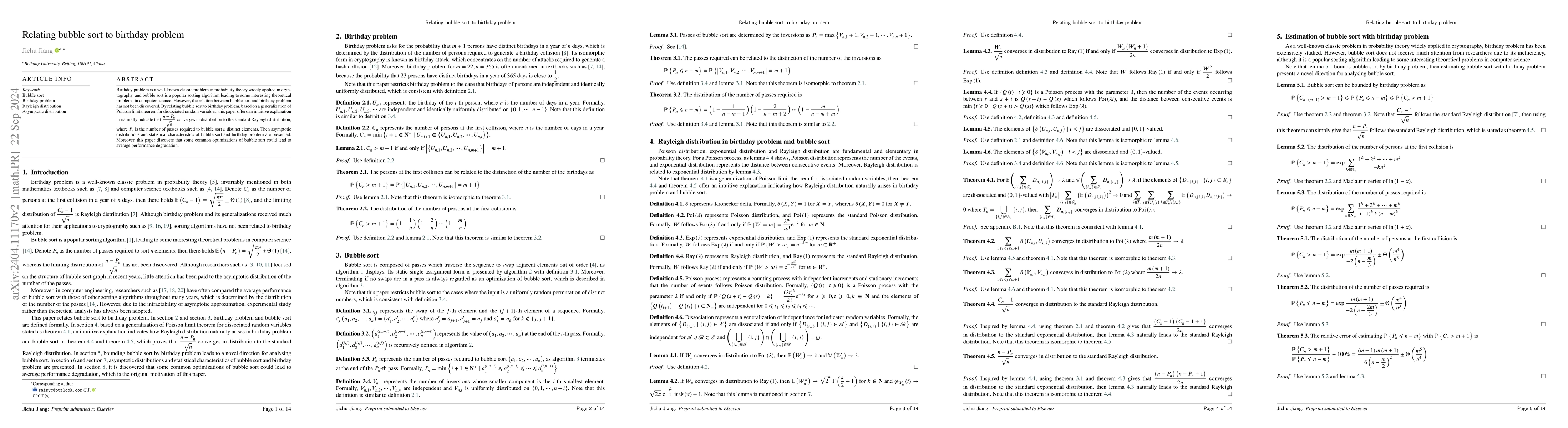 This paper explores the novel connection between bubble sort and the birthday problem, showing how Rayleigh distribution emerges in bubble sort analogous to the birthday problem. It presents asymptotic distributions and statistical characteristics of both, while also proving that certain bubble sort optimizations can degrade average performance.