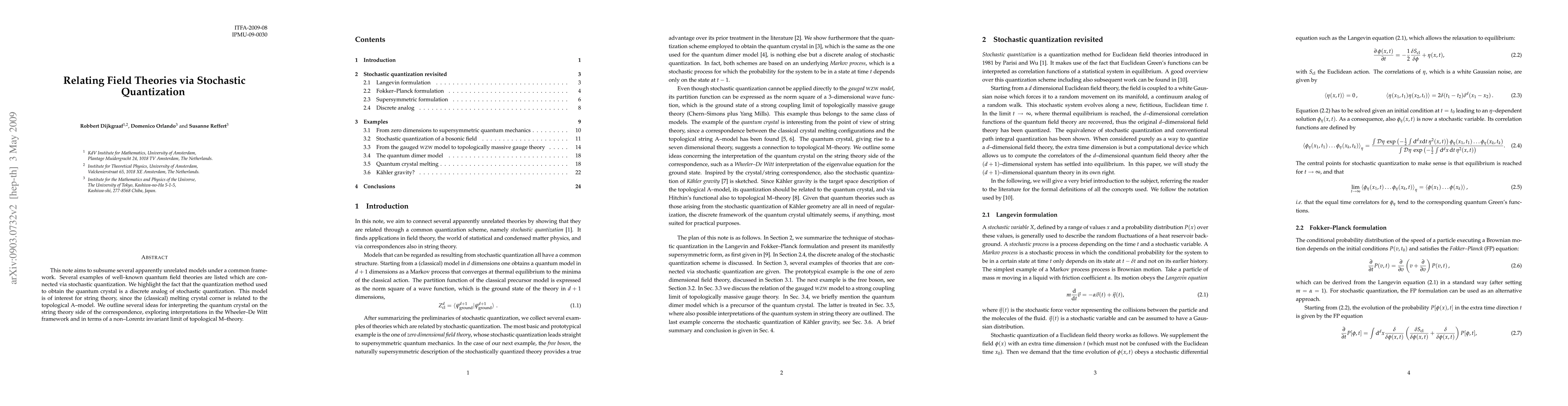 This paper unifies various quantum field theories through stochastic quantization, demonstrating that the quantum crystal's quantization method is a discrete analog of stochastic quantization. It explores connections to string theory, particularly the topological A-model, and discusses interpretations within the Wheeler-De Witt framework and a non-Lorentz invariant limit of topological M-theory.