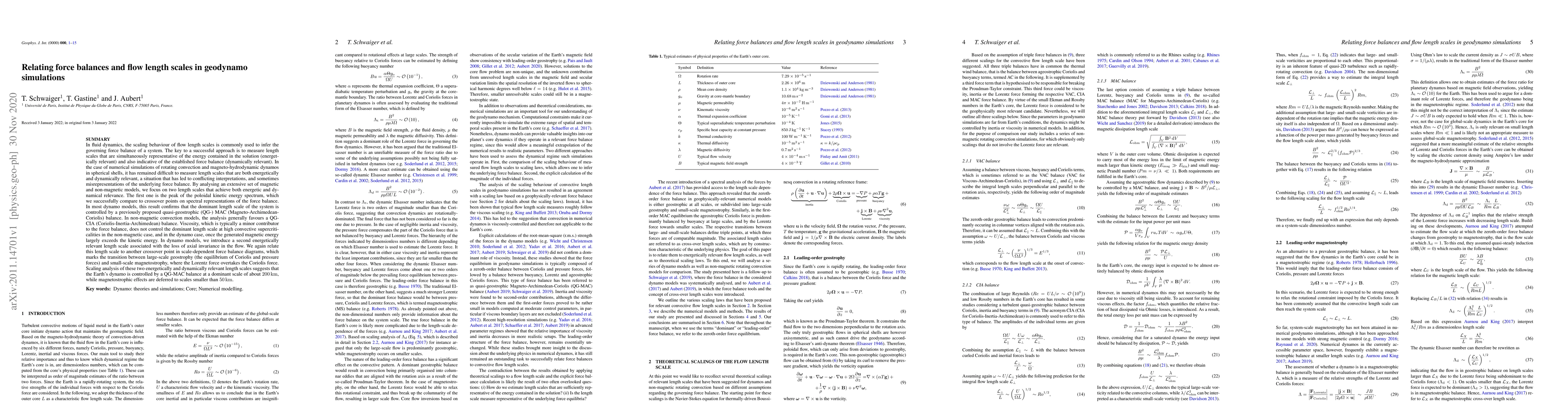 This paper investigates length scales in geodynamo simulations to infer the governing force balance, identifying two key scales that are both energetically and dynamically relevant. The study finds that the dominant length scale in dynamo models is controlled by a quasi-geostrophic Magneto-Archimedean-Coriolis balance, suggesting the Earth's dynamo operates at a scale of approximately 200 km.