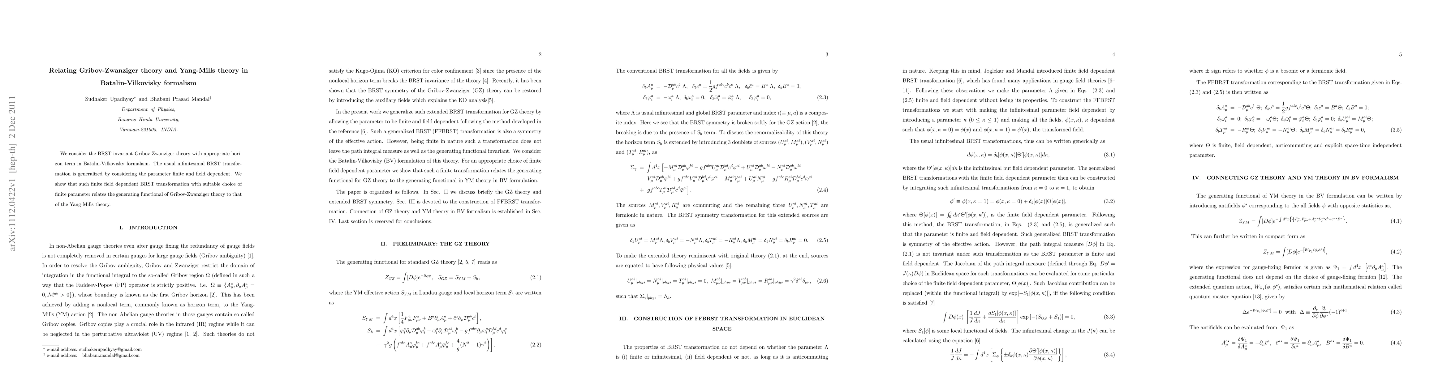 This paper demonstrates a connection between Gribov-Zwanziger theory and Yang-Mills theory using the Batalin-Vilkovisky formalism. It introduces a finite, field-dependent BRST transformation that relates the generating functionals of both theories.