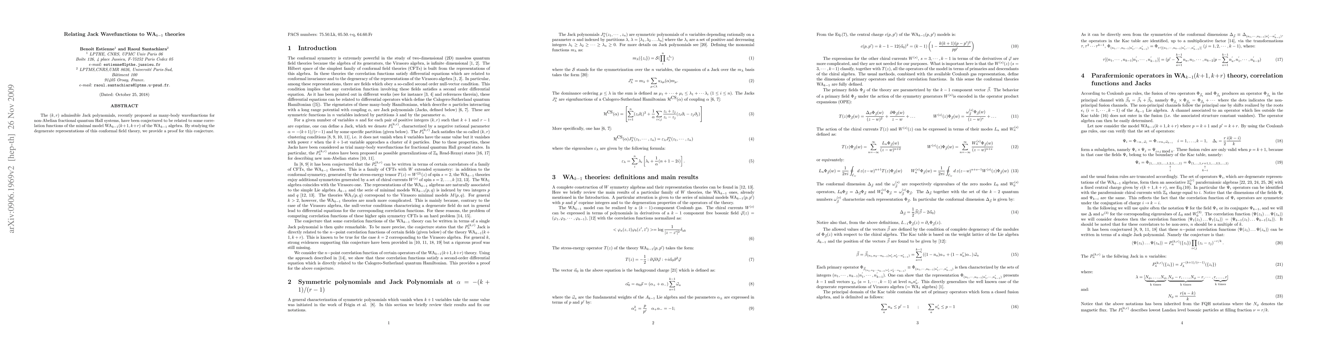 The (k,r)-admissible Jack polynomials, recently proposed as many-body wavefunctions for non-Abelian fractional quantum Hall systems, have been conjectured to be related to some correlation functions of the minimal model WA_{k-1}(k+1,k+r) of the WA_{k-1} algebra. By studying the degenerate representations of the WA_{k-1}(k+1,k+r) theory, we provide a proof for this conjecture.
