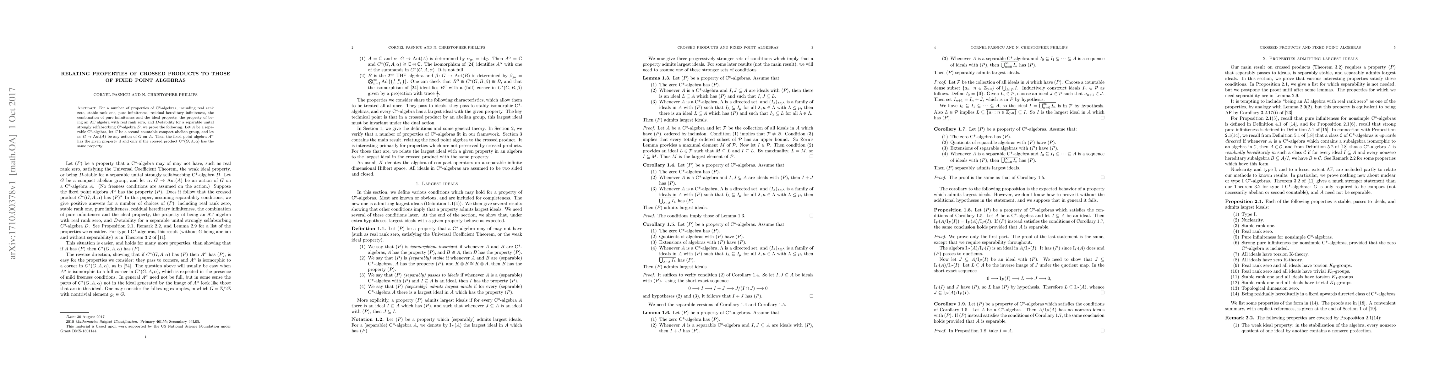 The paper shows that properties of fixed point algebras in C*-algebras can be preserved when considering crossed products under specific actions of compact abelian groups. It establishes an equivalence between the fixed point algebra's property and its corresponding crossed product.