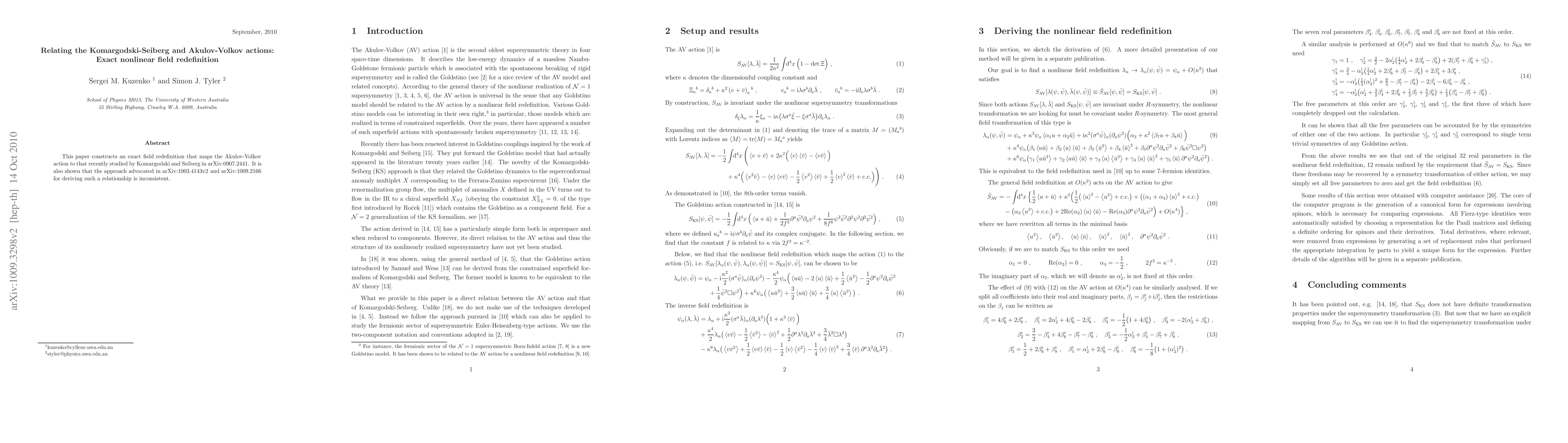 Researchers establish an exact field redefinition mapping Akulov-Volkov action to Komargodski-Seiberg action, contradicting a previously proposed approach.