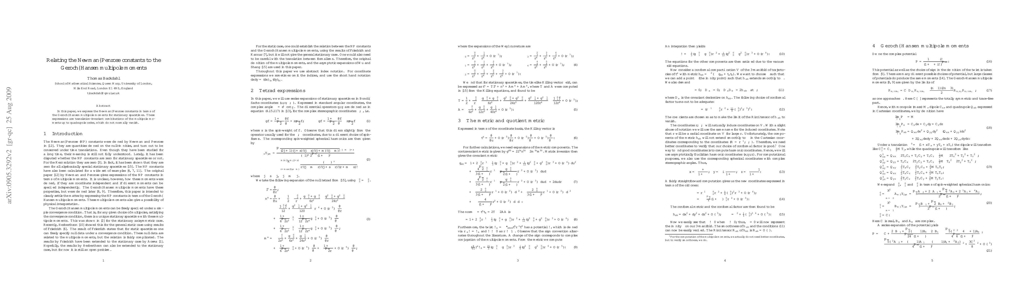 This paper establishes a relationship between the Newman-Penrose constants and the Geroch-Hansen multipole moments for stationary spacetimes, providing translation-invariant expressions of the constants in terms of the multipole moments up to quadrupole order.