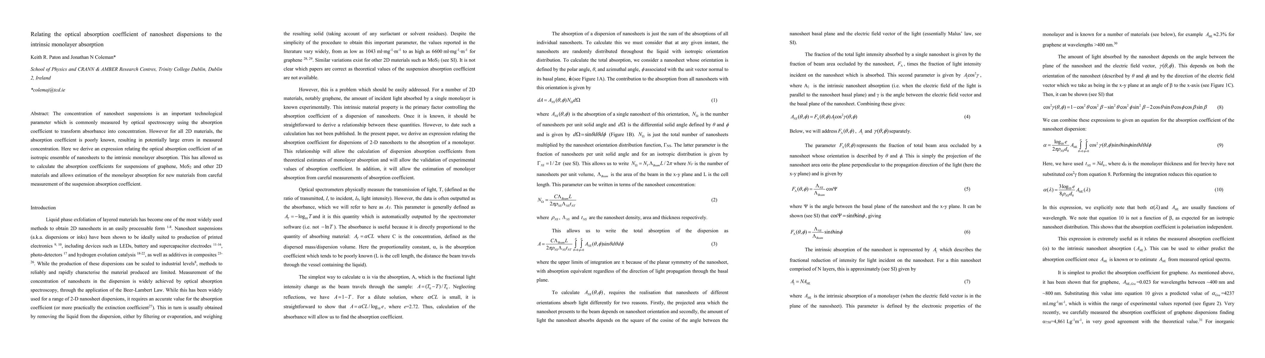 Researchers developed a method to relate the optical absorption coefficient of nanosheet suspensions to their intrinsic monolayer absorption, enabling more accurate concentration measurements for 2D materials like graphene and MoS2.