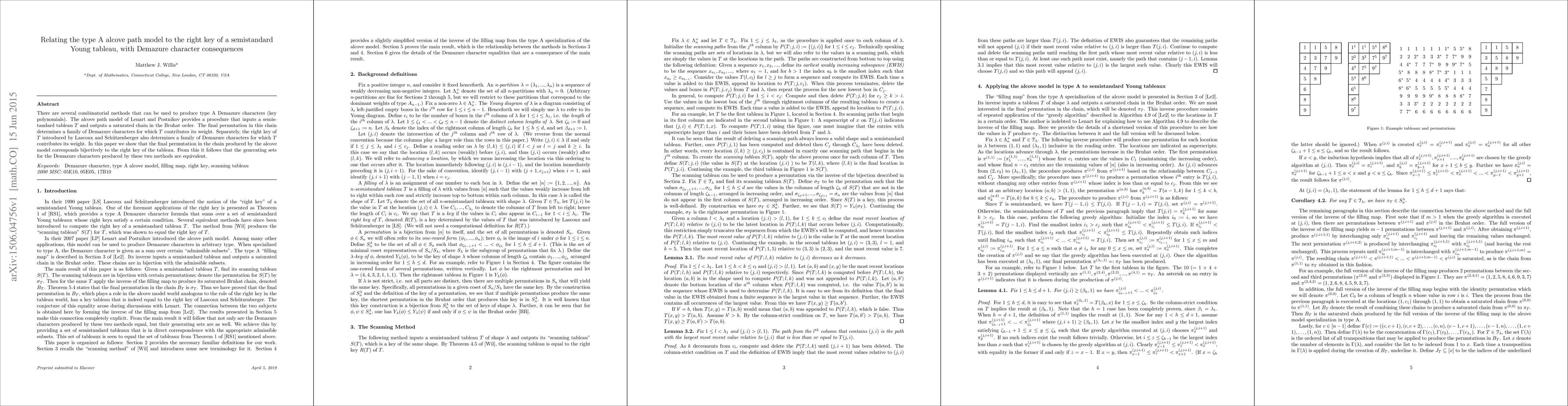This paper establishes a bijection between the final permutation from the alcove path model and the right key of a semistandard Young tableau, demonstrating that both methods yield equivalent generating sets for type A Demazure characters.