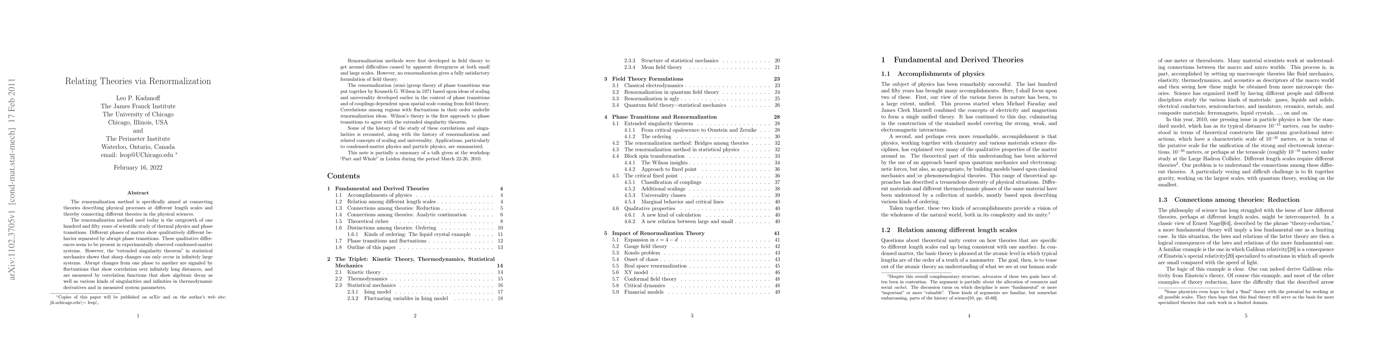 The renormalization method is specifically aimed at connecting theories describing physical processes at different length scales and thereby connecting different theories in the physical sciences. The renormalization method used today is the outgrowth of one hundred and fifty years of scientific study of thermal physics and phase transitions. Different phases of matter show qualitatively different behavior separated by abrupt phase transitions. These qualitative differences seem to be present in experimentally observed condensed-matter systems. However, the "extended singularity theorem" in statistical mechanics shows that sharp changes can only occur in infinitely large systems. Abrupt changes from one phase to another are signaled by fluctuations that show correlation over infinitely long distances, and are measured by correlation functions that show algebraic decay as well as various kinds of singularities and infinities in thermodynamic derivatives and in measured system parameters. Renormalization methods were first developed in field theory to get around difficulties caused by apparent divergences at both small and large scales. The renormalization (semi-)group theory of phase transitions was put together by Kenneth G. Wilson in 1971 based upon ideas of scaling and universality developed earlier in the context of phase transitions and of couplings dependent upon spatial scale coming from field theory. Correlations among regions with fluctuations in their order underlie renormalization ideas. Wilson's theory is the first approach to phase transitions to agree with the extended singularity theorem. Some of the history of the study of these correlations and singularities is recounted, along with the history of renormalization and related concepts of scaling and universality. Applications are summarized.