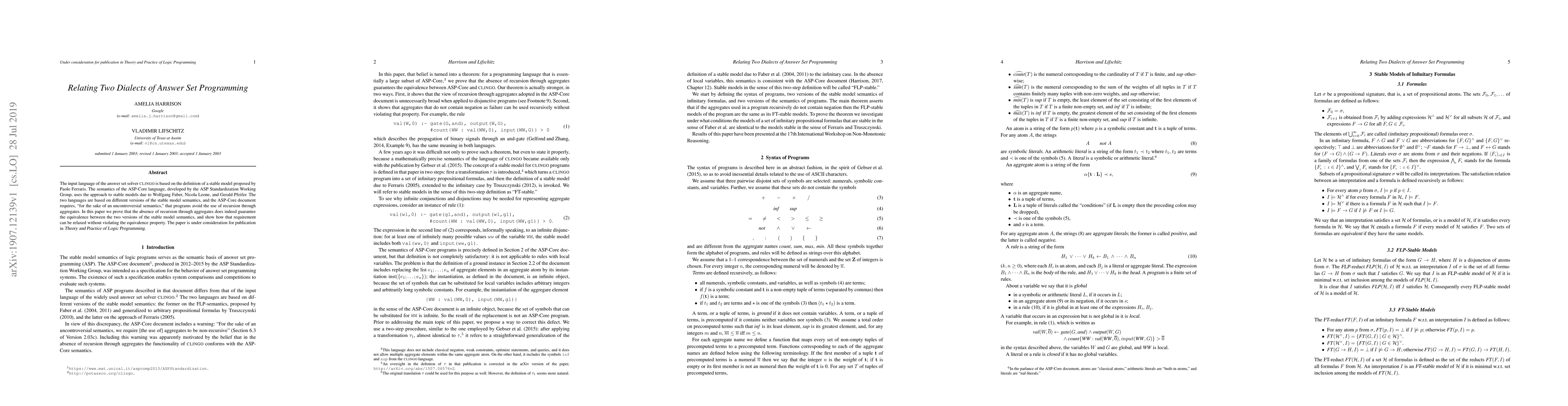 The input language of the answer set solver clingo is based on the definition of a stable model proposed by Paolo Ferraris. The semantics of the ASP-Core language, developed by the ASP Standardization Working Group, uses the approach to stable models due to Wolfgang Faber, Nicola Leone, and Gerald Pfeifer. The two languages are based on different versions of the stable model semantics, and the ASP-Core document requires, "for the sake of an uncontroversial semantics," that programs avoid the use of recursion through aggregates. In this paper we prove that the absence of recursion through aggregates does indeed guarantee the equivalence between the two versions of the stable model semantics, and show how that requirement can be relaxed without violating the equivalence property. The paper is under consideration for publication in Theory and Practice of Logic Programming.