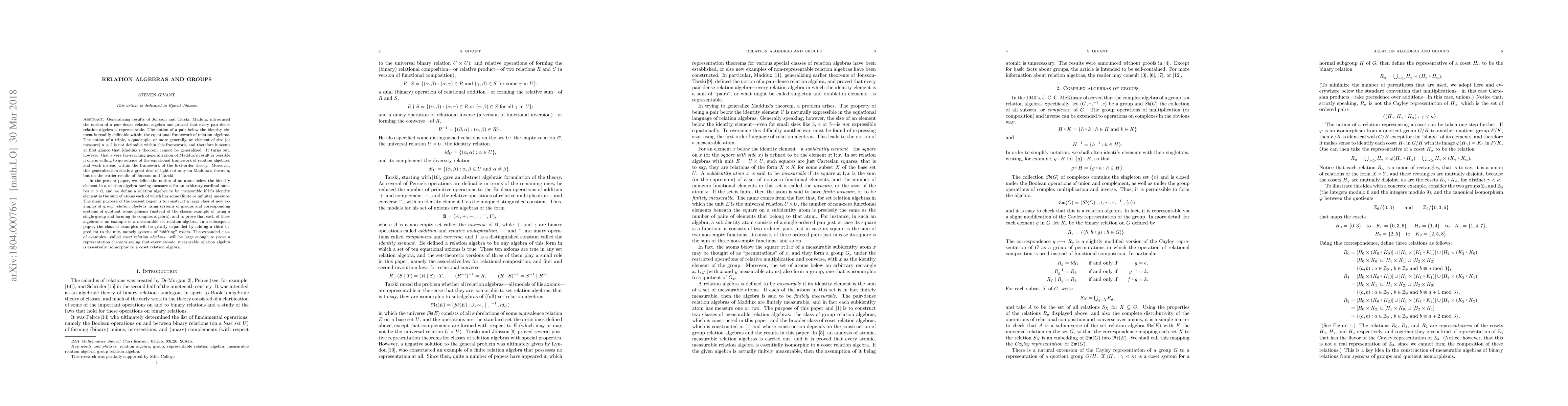 This paper generalizes Maddux's theorem on representable pair-dense relation algebras by introducing measurable relation algebras, where the identity element is a sum of atoms of finite or infinite measure. The authors construct a new class of group relation algebras using systems of groups and quotient isomorphisms, proving each is a measurable set relation algebra, and plan to expand this class further to prove a representation theorem for atomic, measurable relation algebras.