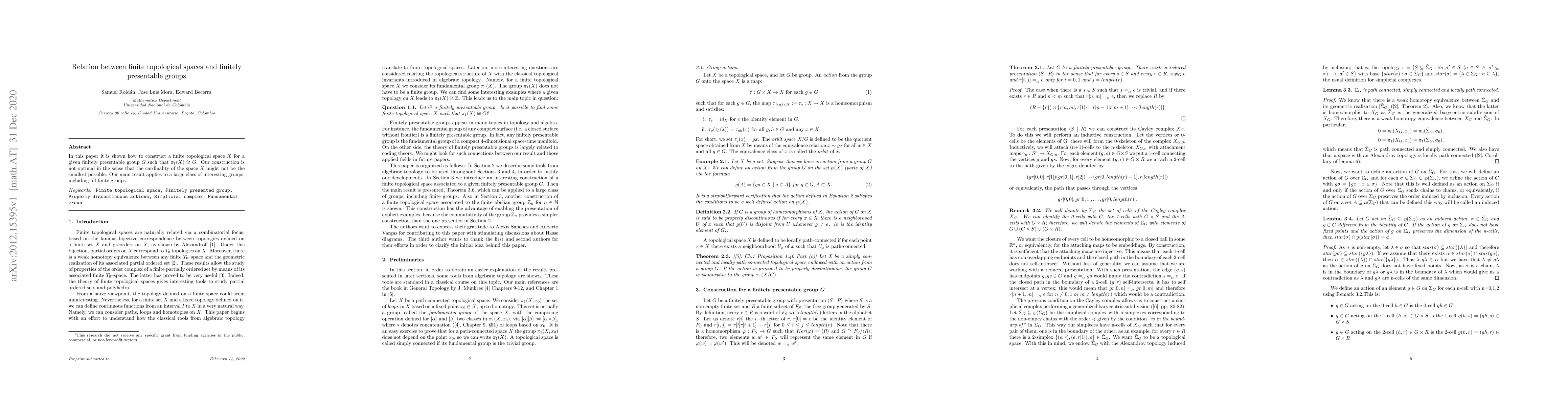 Researchers have developed a method to create a finite topological space that is homeomorphic to a given finitely presentable group, allowing for the mapping of the group's fundamental group to the space.