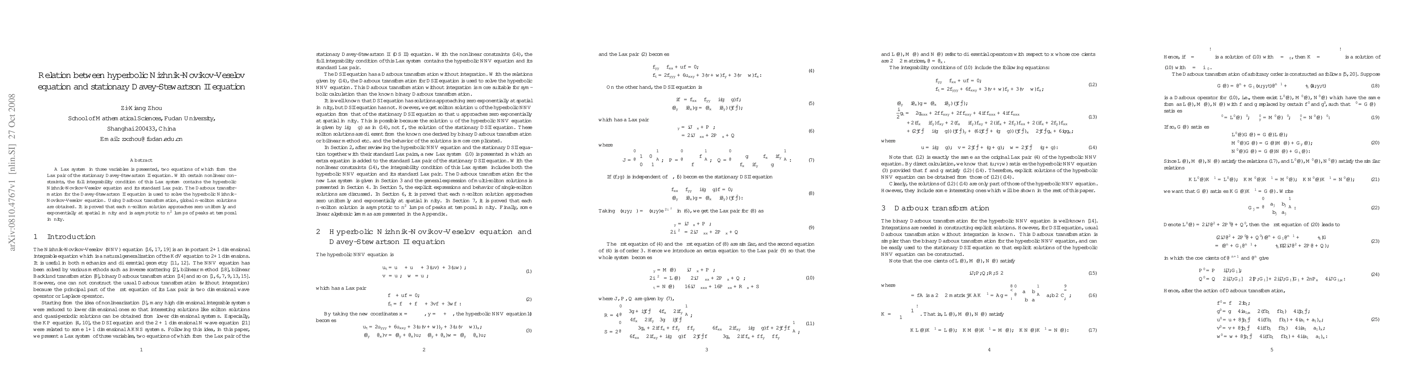 This paper establishes a Lax system linking the stationary Davey-Stewartson II equation and the hyperbolic Nizhnik-Novikov-Veselov equation, and uses Darboux transformation to derive global $n$-soliton solutions, proving their asymptotic behavior.