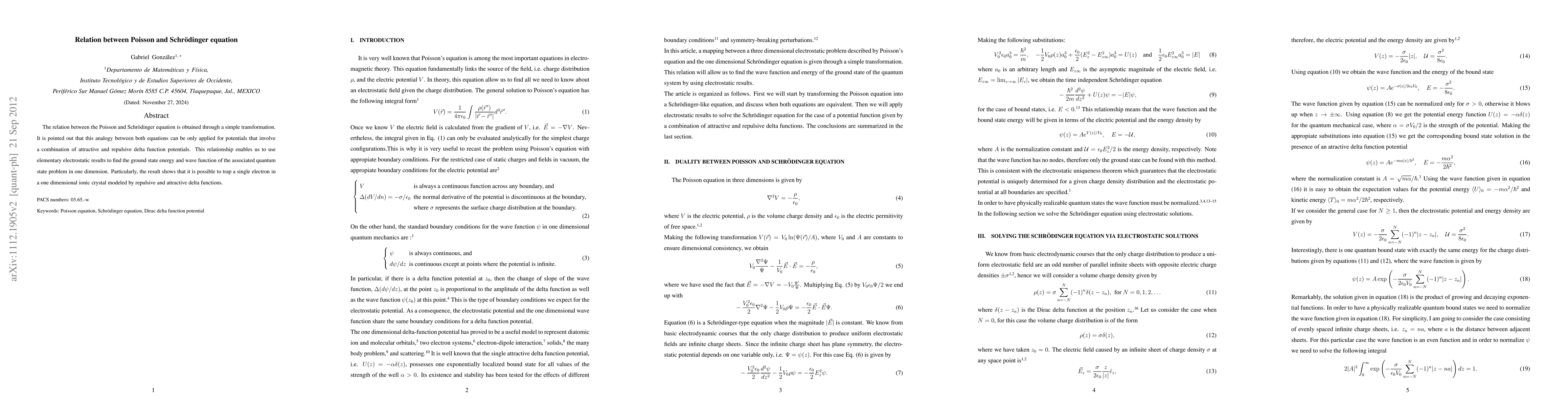 The paper establishes a transformation linking the Poisson and Schrödinger equations in one dimension, applicable to potentials involving a mix of delta function attractions and repulsions. This analogy allows for using electrostatic results to solve the quantum bound state problem, demonstrating the potential to trap a single electron in a one-dimensional ionic crystal.