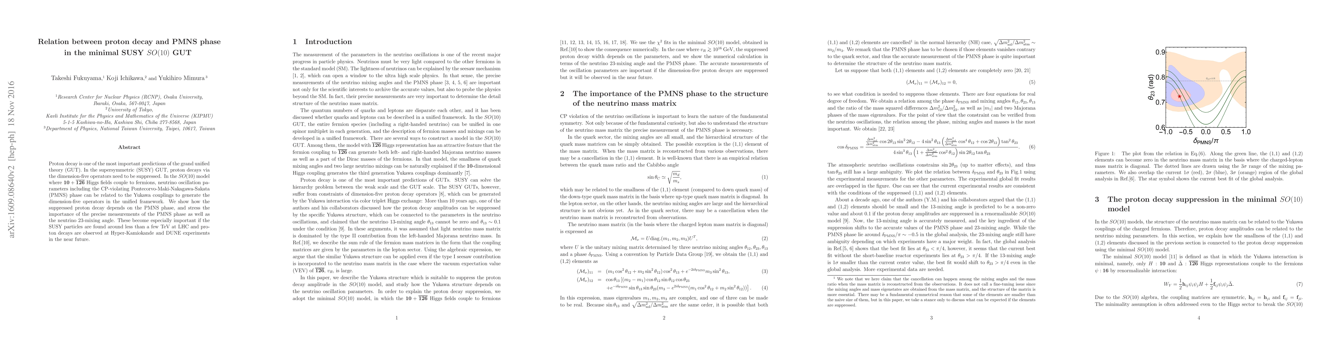 This paper explores the connection between proton decay suppression and the CP-violating Pontecorvo-Maki-Nakagawa-Sakata (PMNS) phase in the minimal supersymmetric $SO(10)$ grand unified theory (GUT). It highlights the significance of precise measurements of the PMNS phase and the neutrino 23-mixing angle for predicting proton decay rates, especially if SUSY particles are discovered at the LHC and proton decay is observed in upcoming experiments.