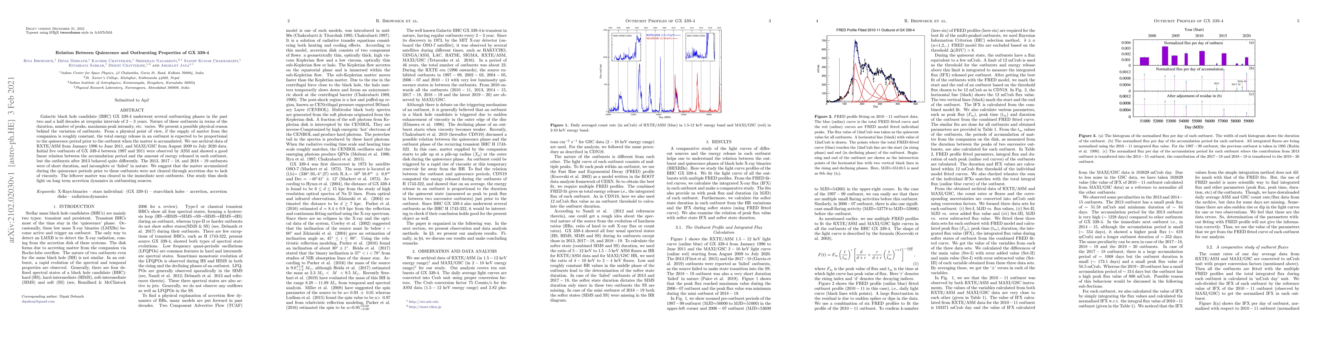 This paper investigates the relationship between quiescence and outbursting phases of the black hole candidate GX 339-4, finding a linear correlation between the duration of quiescence and energy release in initial outbursts. However, recent outbursts have been shorter and incomplete, suggesting a change in accretion dynamics due to insufficient viscosity to clear accumulated matter.