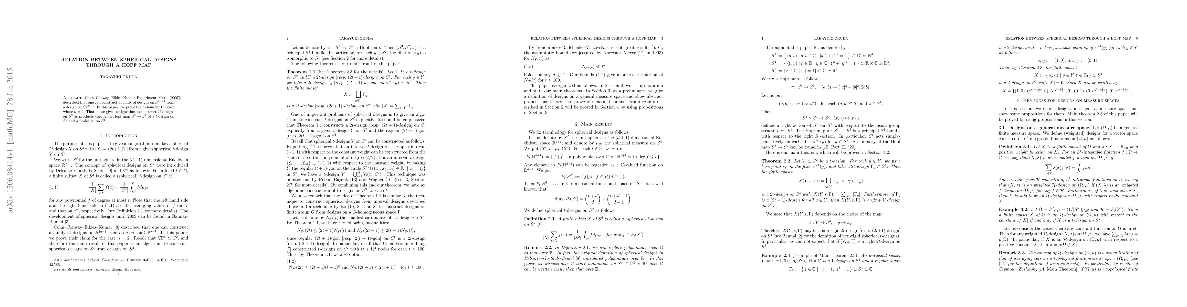 Cohn--Conway--Elkies--Kumar [Experiment. Math. (2007)] described that one can construct a family of designs on $S^{2n-1}$ from a design on $\mathbb{CP}^{n-1}$. In this paper, we prove their claim for the case where $n=2$. That is, we give an algorithm to construct $2t$-designs on $S^{3}$ as products through a Hopf map $S^3 \rightarrow S^2$ of a $t$-design on $S^2$ and a $2t$-design on $S^1$.