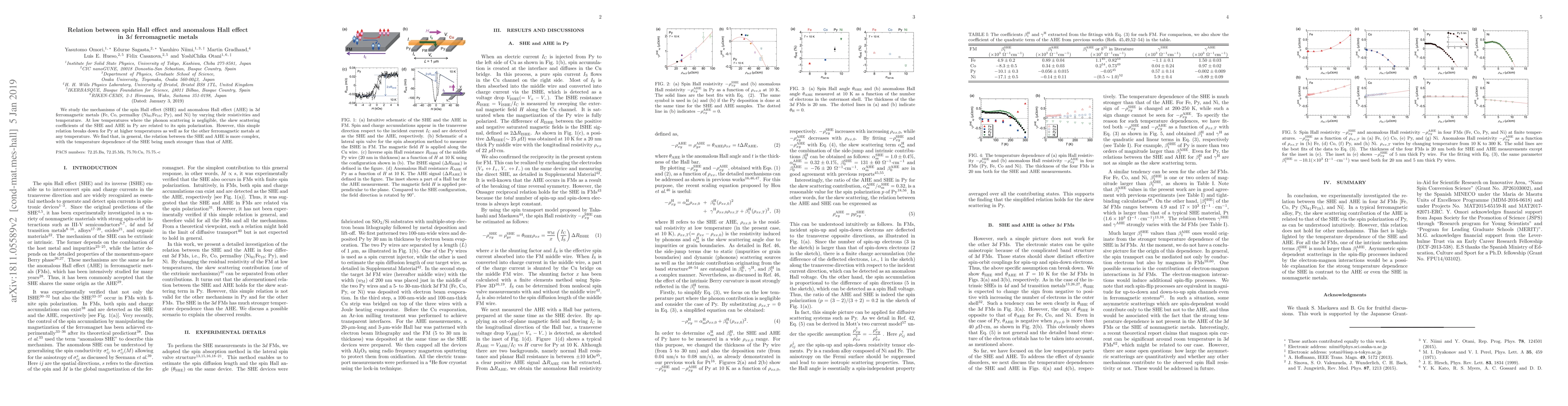 The study reveals a complex relationship between the spin Hall effect (SHE) and anomalous Hall effect (AHE) in 3d ferromagnetic metals, showing that while a simple relation holds at low temperatures, this breaks down at higher temperatures, with the SHE's temperature dependence being notably stronger than that of the AHE.