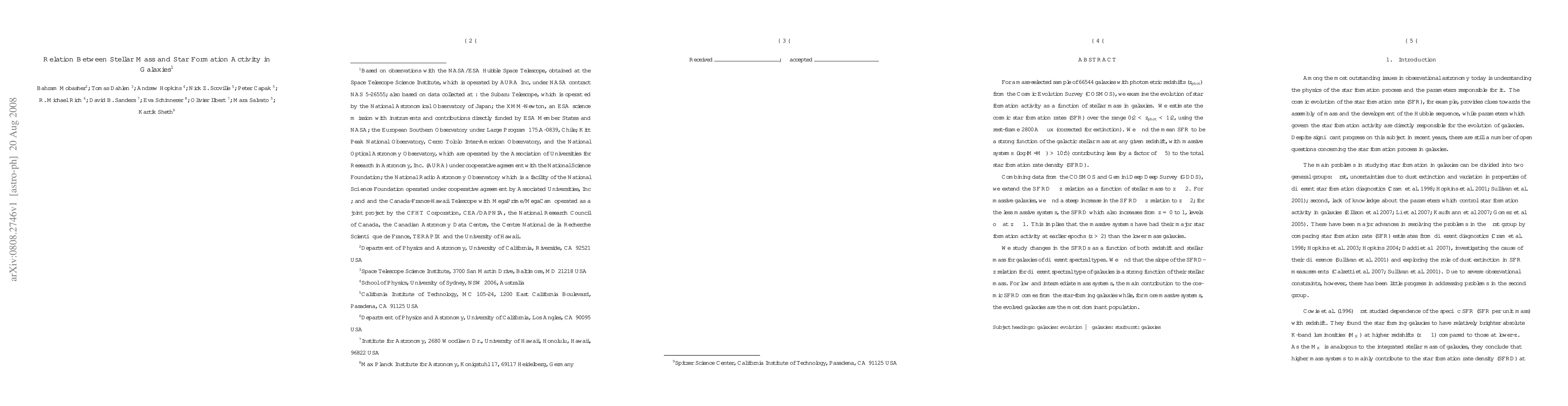 For a mass-selected sample of 66544 galaxies with photometric redshifts from the Cosmic Evolution Survey (COSMOS), we examine the evolution of star formation activity as a function of stellar mass in galaxies. We estimate the cosmic star formation rates (SFR) over the range 0.2 < z < 1.2, using the rest-frame 2800 A flux (corrected for extinction). We find the mean SFR to be a strong function of the galactic stellar mass at any given redshift, with massive systems (log (M/M(Sun)) > 10.5) contributing less (by a factor of ~ 5) to the total star formation rate density (SFRD). Combining data from the COSMOS and Gemini Deep Deep Survey (GDDS), we extend the SFRD-z relation as a function of stellar mass to z~2. For massive galaxies, we find a steep increase in the SFRD-z relation to z~2; for the less massive systems, the SFRD which also increases from z=0 to 1, levels off at z~1. This implies that the massive systems have had their major star formation activity at earlier epochs (z > 2) than the lower mass galaxies. We study changes in the SFRDs as a function of both redshift and stellar mass for galaxies of different spectral types. We find that the slope of the SFRD-z relation for different spectral type of galaxies is a strong function of their stellar mass. For low and intermediate mass systems, the main contribution to the cosmic SFRD comes from the star-forming galaxies while, for more massive systems, the evolved galaxies are the most dominant population.