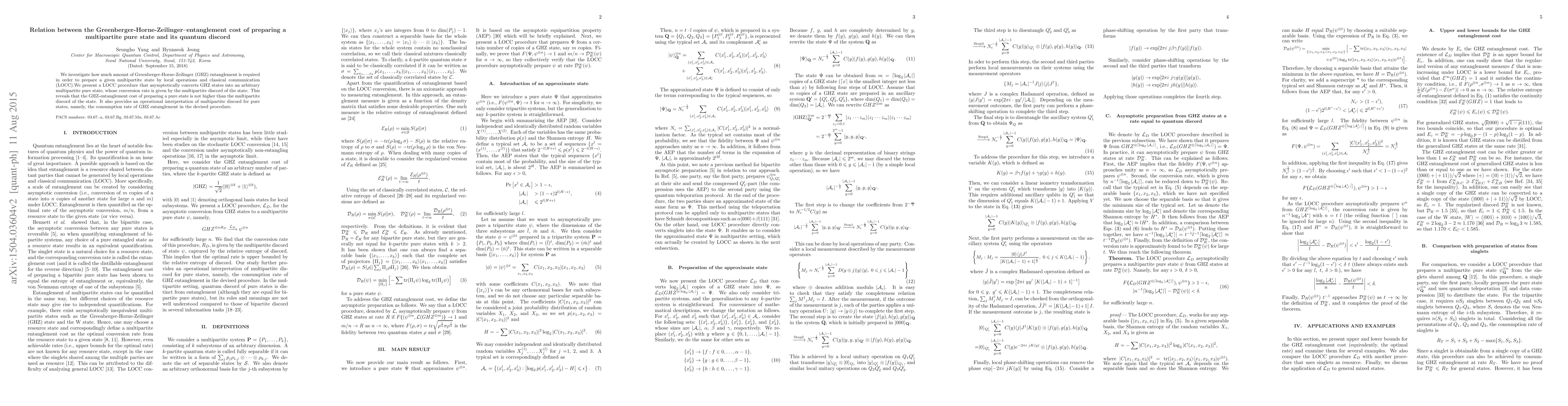 This research examines the relationship between the amount of GHZ entanglement needed to prepare a multipartite pure state through local operations and classical communication (LOCC) and its quantum discord. The study proposes a LOCC procedure that converts GHZ states into the desired state at a rate determined by the state's multipartite discord, indicating that the GHZ-entanglement cost does not exceed the multipartite discord.