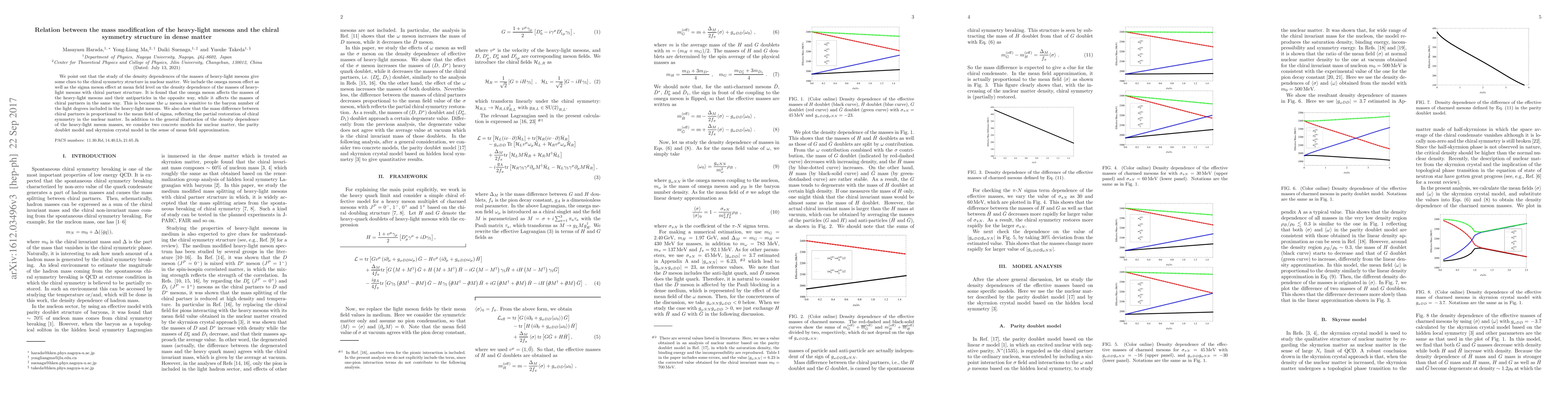 This paper investigates how the mass modifications of heavy-light mesons in dense matter relate to the chiral symmetry structure, revealing that the omega meson affects heavy-light mesons and their antiparticles differently while influencing chiral partners similarly. The mass difference between chiral partners correlates with the sigma meson's mean field, indicating the partial restoration of chiral symmetry in nuclear matter.