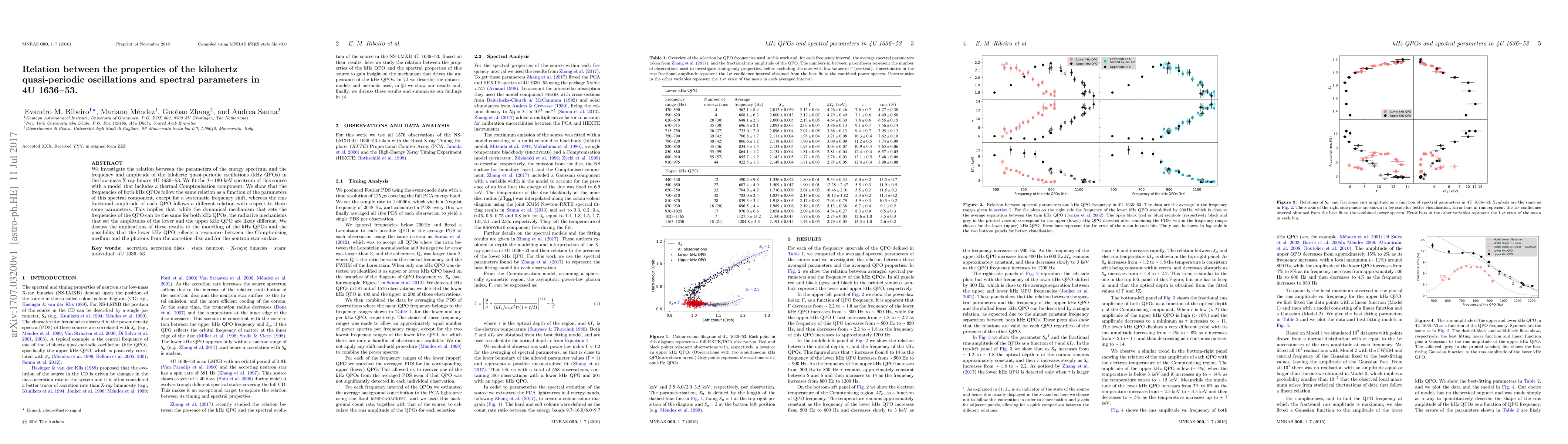 The study investigates the relationship between spectral parameters and kHz QPO properties in 4U 1636-53 using RXTE PCA and HEXTE data, analyzing timing and spectral properties across various frequency ranges of kHz QPOs.
