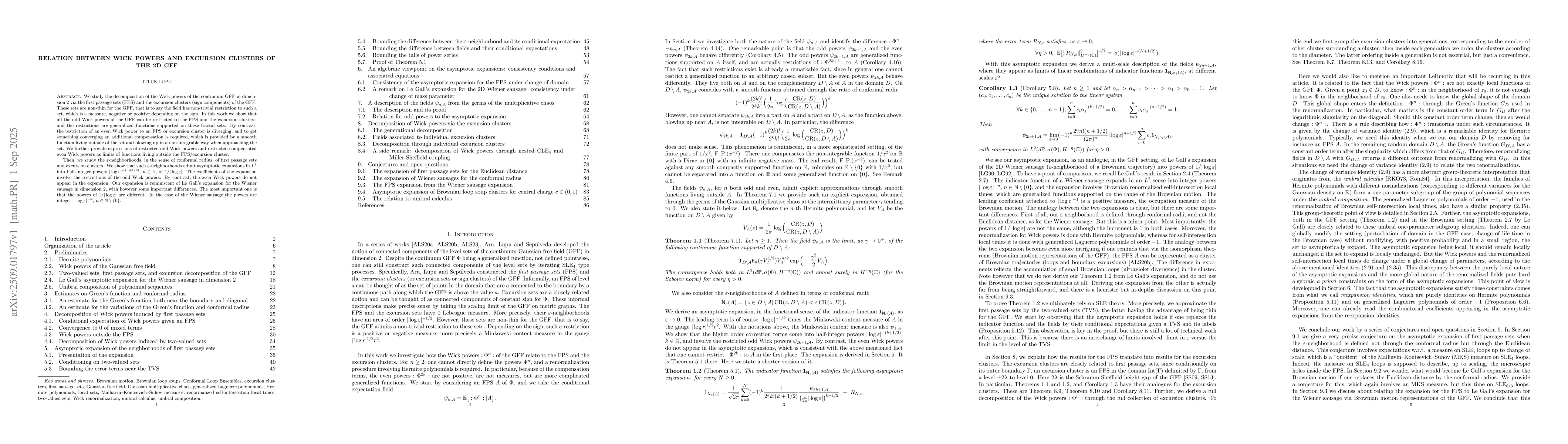 We study the decomposition of the Wick powers of the continuum GFF in dimension $2$ via the first passage sets (FPS) and the excursion clusters (sign components) of the GFF. These sets are non-thin for the GFF, that is to say the field has non-trivial restriction to such a set, which is a measure, negative or positive depending on the sign. In this work we show that all the odd Wick powers of the GFF can be restricted to the FPS and the excursion clusters, and the restrictions are generalized functions supported on these fractal sets. By contrast, the restriction of an even Wick power to an FPS or excursion cluster is diverging, and to get something converging an additional compensation is required, which is provided by a smooth function living outside of the set and blowing up in a non-integrable way when approaching the set. We further provide expressions of restricted odd Wick powers and restricted-compensated even Wick powers as limits of functions living outside the FPS/excursion cluster. Then, we study the $\varepsilon$-neighborhoods, in the sense of conformal radius, of first passage sets and excursion clusters. We show that such $\varepsilon$-neighborhoods admit asymptotic expansions in $L^2$ into half-integer powers $\vert\log \varepsilon\vert^{-(n+1/2)}$, $n\in\mathbb{N}$, of $1/\vert\log \varepsilon\vert$. The coefficients of the expansion involve the restrictions of the odd Wick powers. By contrast, the even Wick powers do not appear in the expansion. Our expansion is reminiscent of Le Gall's expansion for the Wiener sausage in dimension 2, with however some important differences. The most important one is that the powers of $1/\vert\log \varepsilon\vert$ are different. In the case of the Wiener sausage the powers are integer, $\vert\log \varepsilon\vert^{-n}$, $n\in\mathbb{N}\setminus \{0\}$.