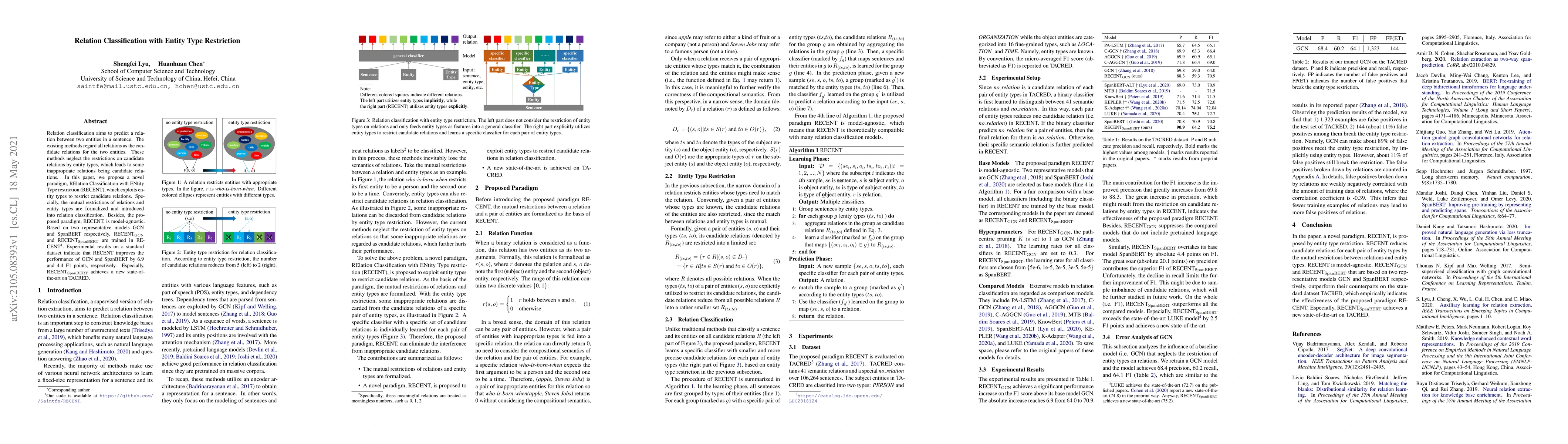 Relation classification aims to predict a relation between two entities in a sentence. The existing methods regard all relations as the candidate relations for the two entities in a sentence. These methods neglect the restrictions on candidate relations by entity types, which leads to some inappropriate relations being candidate relations. In this paper, we propose a novel paradigm, RElation Classification with ENtity Type restriction (RECENT), which exploits entity types to restrict candidate relations. Specially, the mutual restrictions of relations and entity types are formalized and introduced into relation classification. Besides, the proposed paradigm, RECENT, is model-agnostic. Based on two representative models GCN and SpanBERT respectively, RECENT_GCN and RECENT_SpanBERT are trained in RECENT. Experimental results on a standard dataset indicate that RECENT improves the performance of GCN and SpanBERT by 6.9 and 4.4 F1 points, respectively. Especially, RECENT_SpanBERT achieves a new state-of-the-art on TACRED.