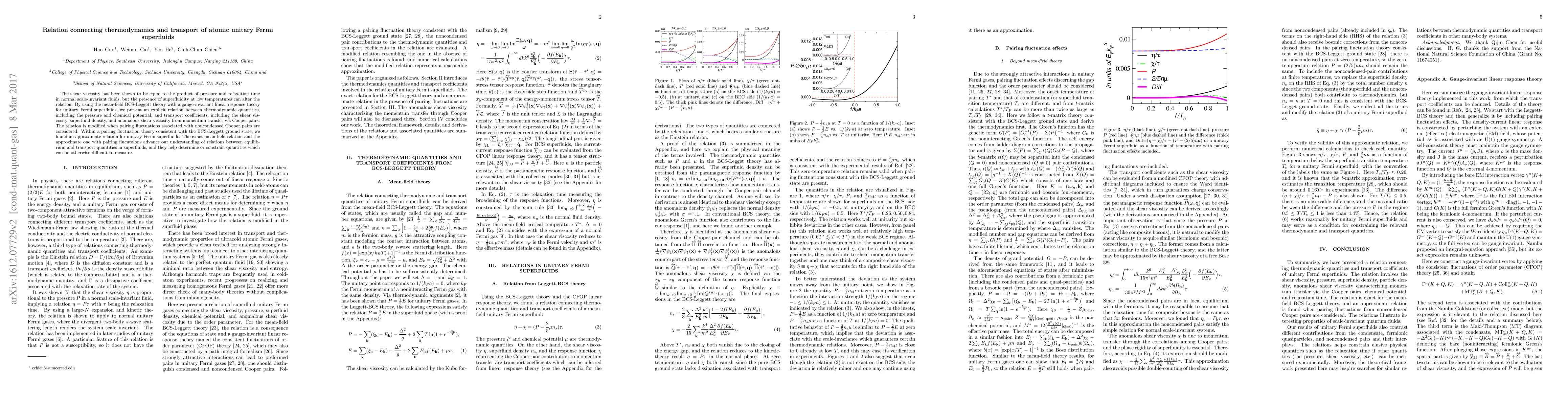 This paper establishes an explicit relation between thermodynamic quantities and transport coefficients for unitary Fermi superfluids, using BCS-Leggett theory and gauge-invariant linear response theory. The study reveals modifications to the relation due to pairing fluctuations, providing insights into the interplay between equilibrium and transport properties in superfluids.