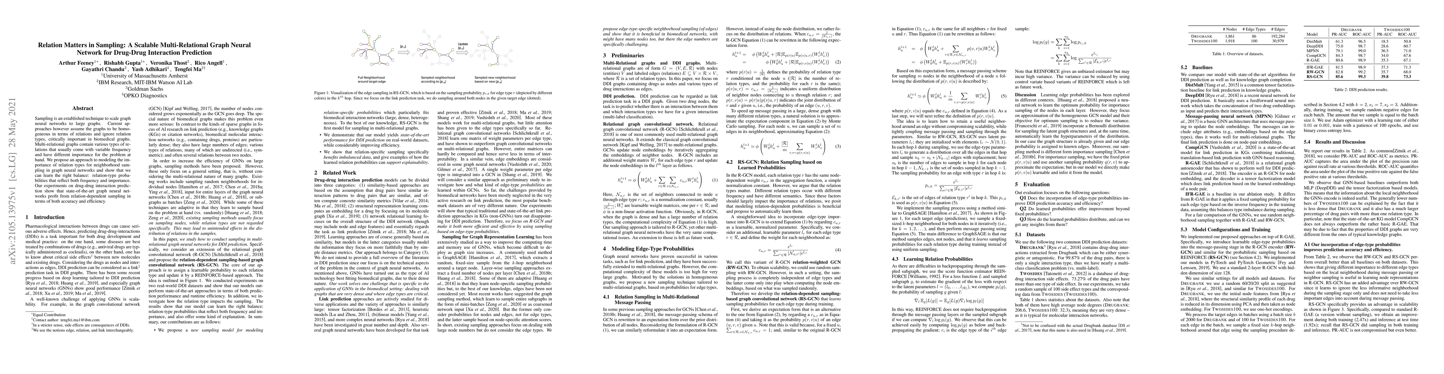 This paper proposes a method to model relation types for neighborhood sampling in graph neural networks, improving accuracy and efficiency in drug-drug interaction prediction. It shows that state-of-the-art methods can benefit from relation-dependent sampling, leading to better performance.
