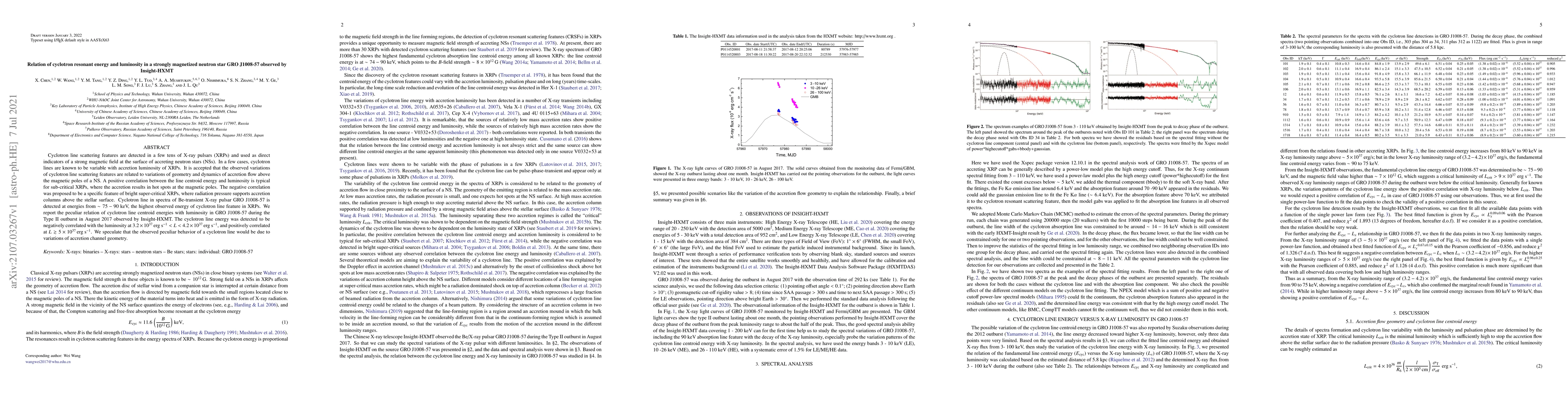 by Insight-HXMT. The cyclotron line energy was detected to be negatively