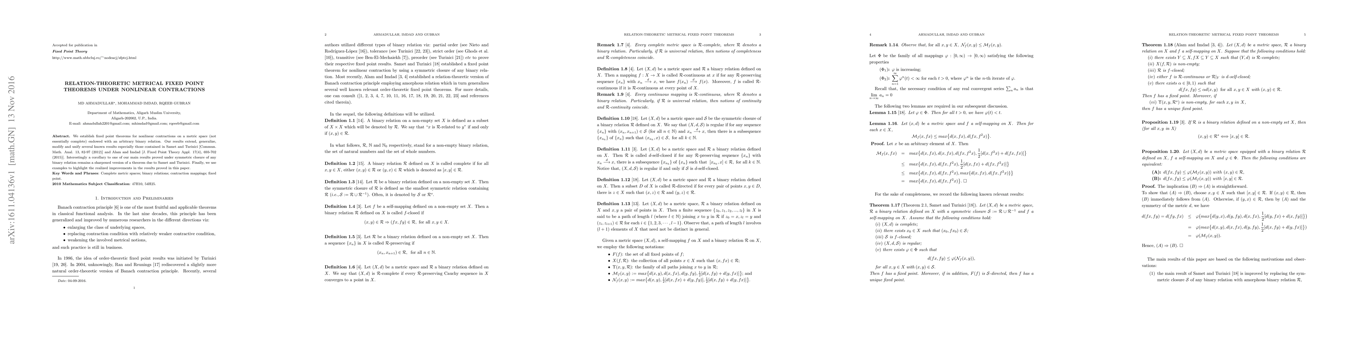 This paper establishes fixed point theorems for nonlinear contractions on metric spaces with arbitrary binary relations, extending previous results and providing new insights into these mathematical concepts.