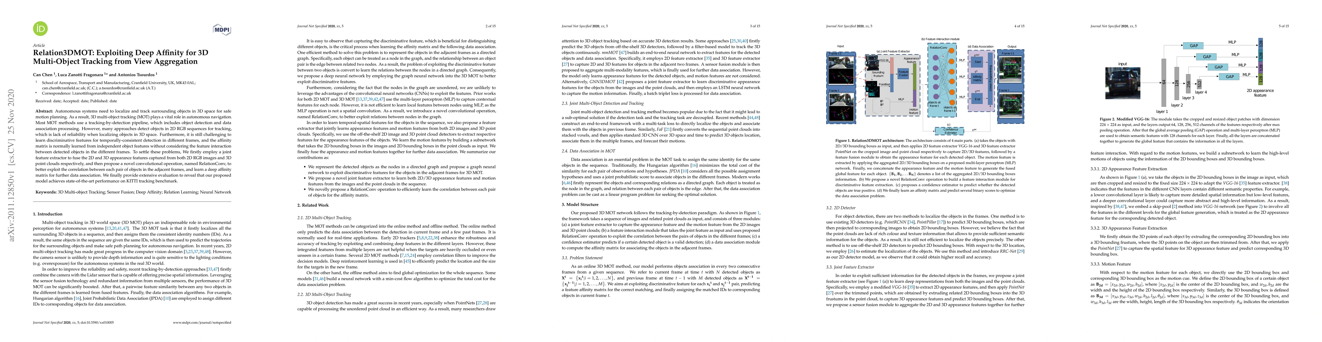 The paper introduces Relation3DMOT, a method that leverages deep affinity learned from joint 2D and 3D features to enhance 3D multi-object tracking. It employs a RelationConv operation to exploit correlations between objects across frames, achieving state-of-the-art performance on the KITTI benchmark.